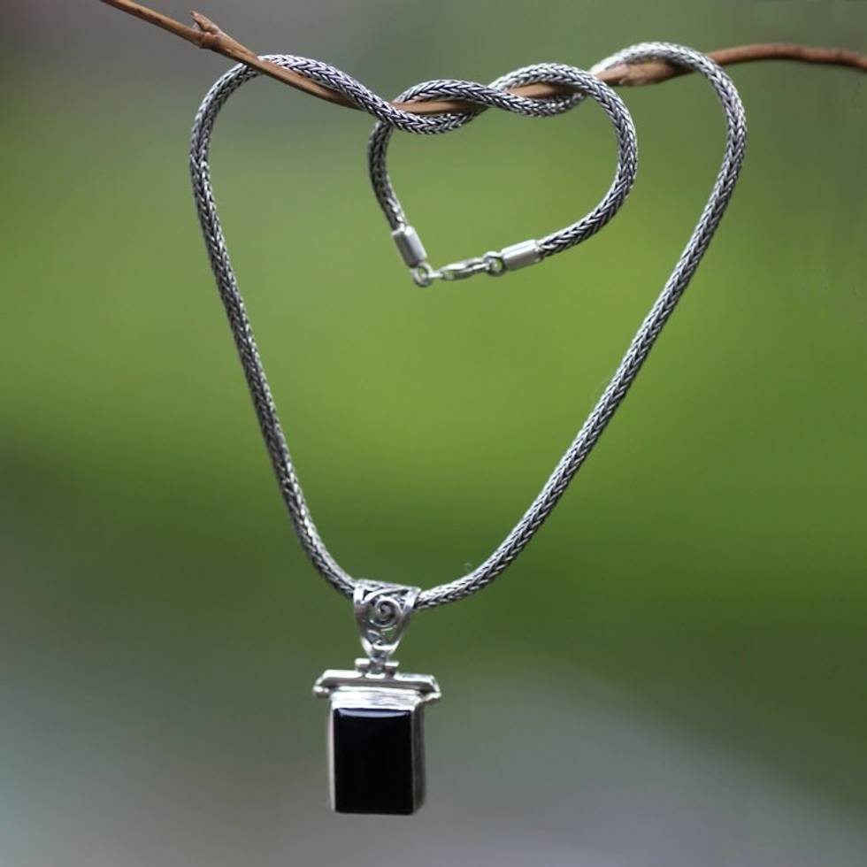 Onyx Sterling Silver Pendant Necklace 'Dream Guide' Item ID: 2671479847