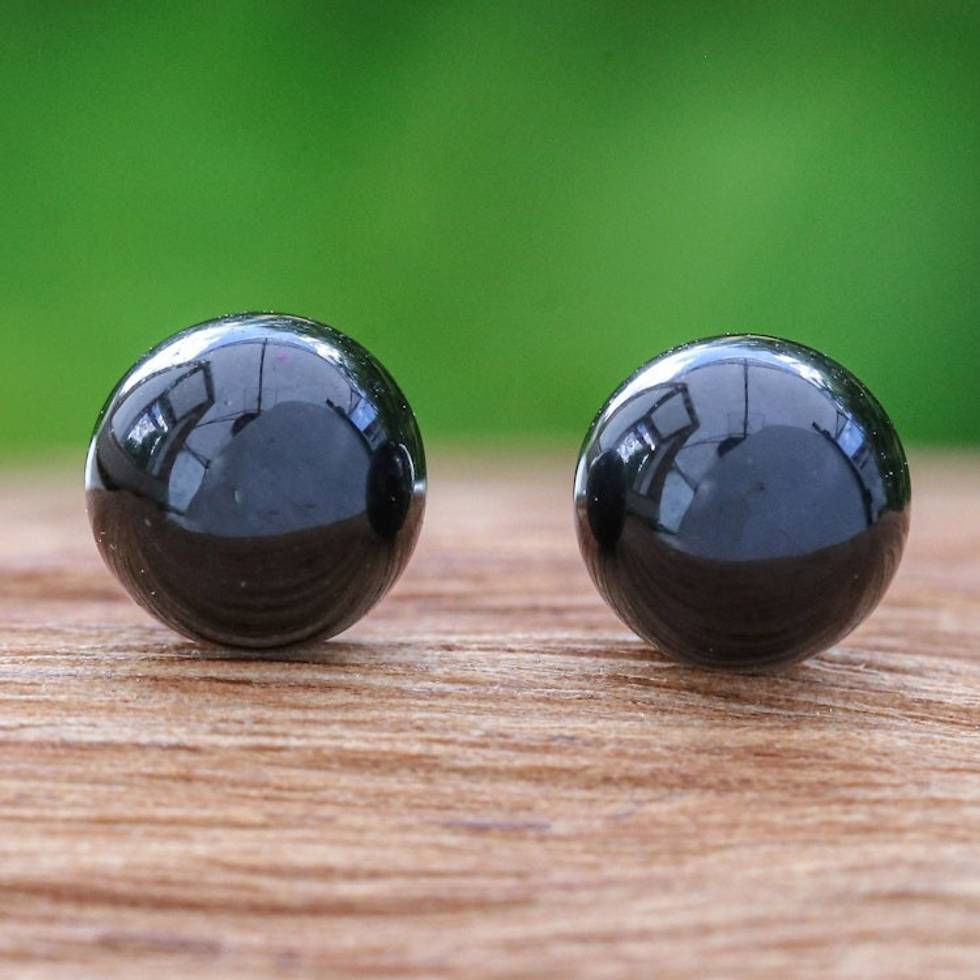 Onyx Stud Earrings with Sterling Silver Posts 'Mystery Dimension' Item ID: 2669926150