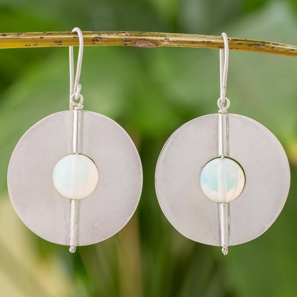 Opal and Sterling Silver Dangle Earrings from Nicaragua 'Full Moons' Item ID: 2669923756