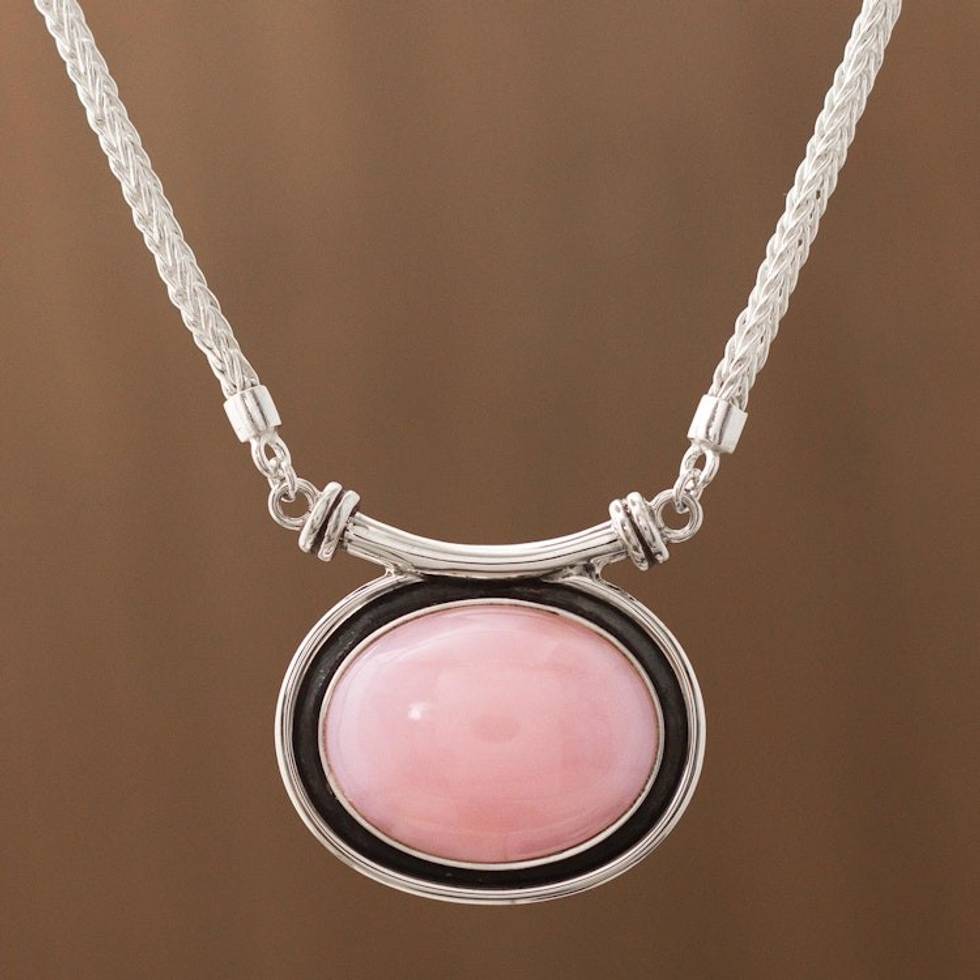 Soft pink, brilliant sterling silver in a stylish setting. These earrings have quickly become my favorite. The length and size are perfect and matches the picture perfectly. Tiberio Gonzales is such a brilliant and gifted craftsman.