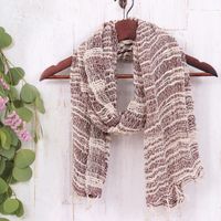Open-Weave Hand-Woven Striped Fringed Brown Cotton Scarf 'Cozy Chic' Item ID: 2671646458