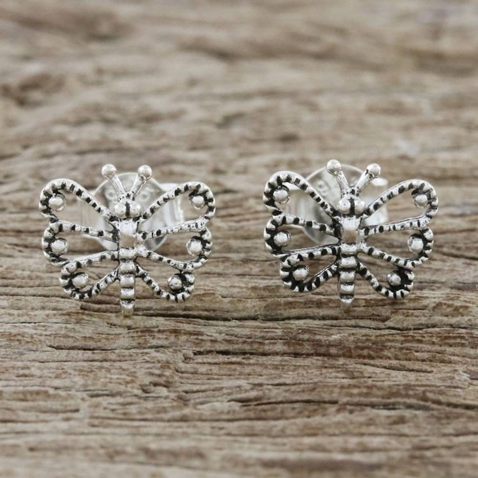 Openwork Butterfly Sterling Silver Stud Earrings 'Dotted Butterflies' Item ID: 2669929604