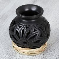 Openwork Floral Ceramic Decorative Vase from Mexico 'Dark Petals' Item ID: 2669897825