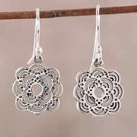Openwork Floral Sterling Silver Dangle Earrings from India 'Curvy Flowers' Item ID: 2671792153
