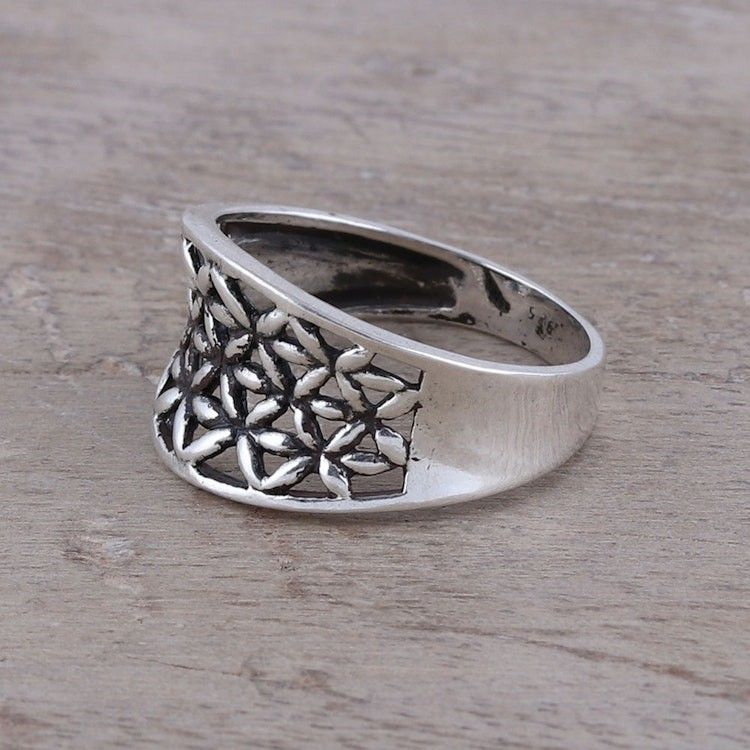 Openwork Pattern Sterling Silver Band Ring from India 'Floral Lattice' Item ID: 2671792959