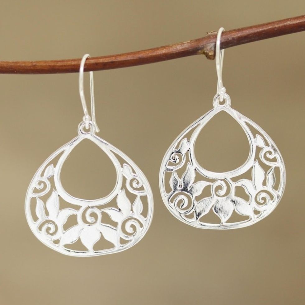 Openwork Pattern Sterling Silver Dangle Earrings from India 'Petal Greetings' Item ID: 2671789432