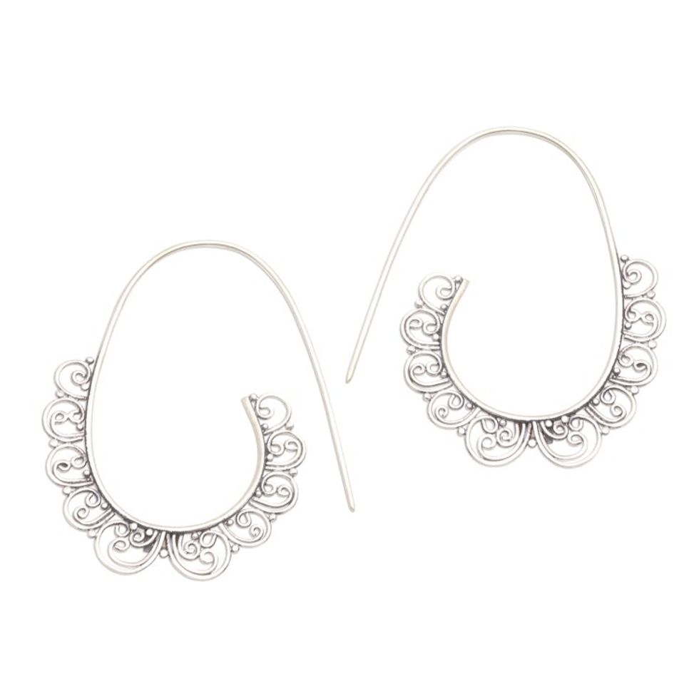 Openwork Pattern Sterling Silver Half-Hoop Earrings 'Moving Swirls' Item ID: 2671737794