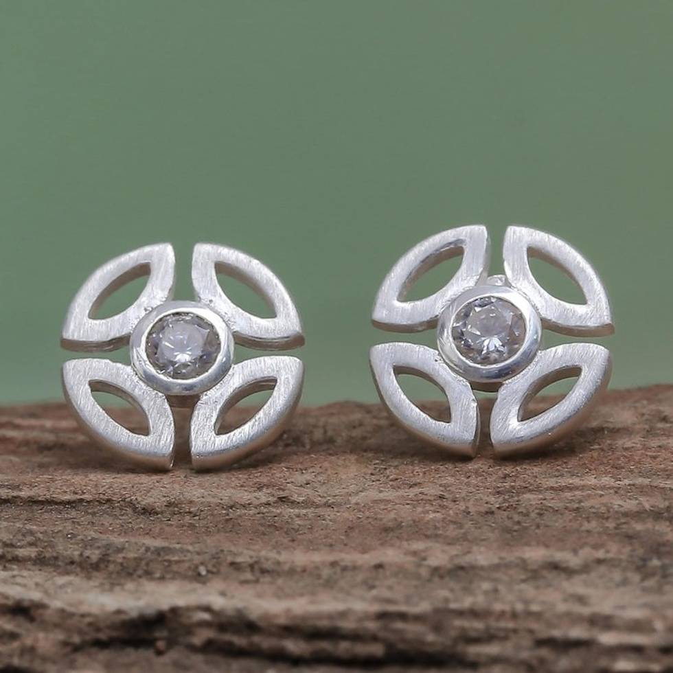 Openwork Sterling Silver and CZ Stud Earrings from Thailand 'Round Wheel' Item ID: 2671798344
