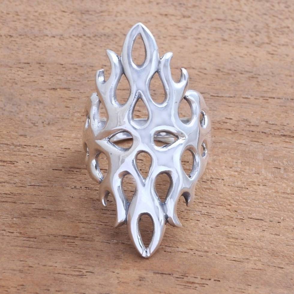Openwork Sterling Silver Cocktail Ring from Bali 'Gleaming Flame' Item ID: 2671735443
