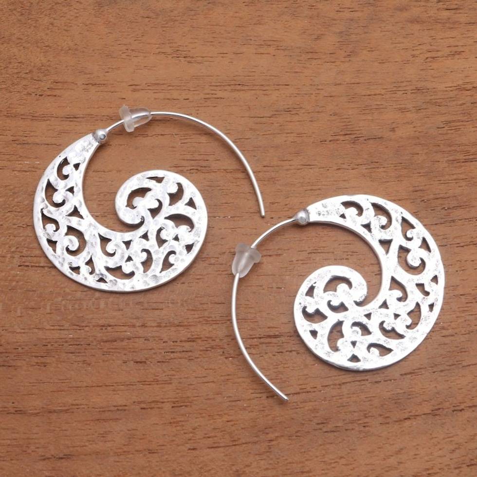 Openwork Sterling Silver Half-Hoop Earrings from Bali 'Wave Crests' Item ID: 2671737772
