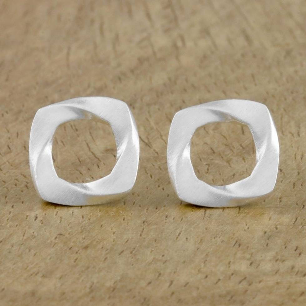 Openwork Sterling Silver Square Drop Earrings from Thailand 'Square Twist' Item ID: 2671801056