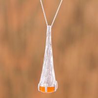 Orange Agate and 925 Silver Pendant Necklace from Mexico 'Orange Snow Cone' Item ID: 2671808875