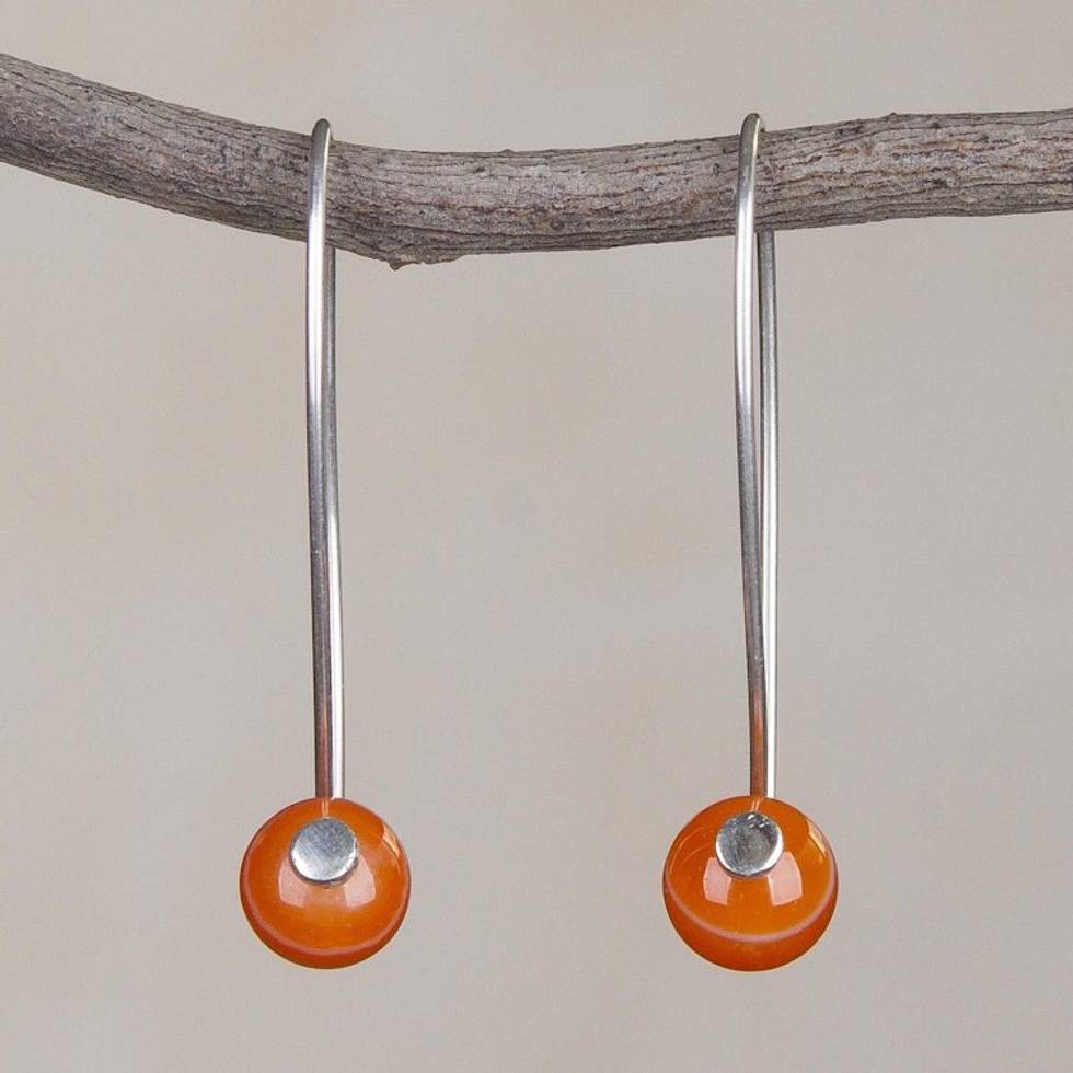 Orange Agate and Sterling Silver Drop Earrings from Peru 'Spheres of Splendor' Item ID: 2669919391