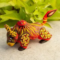 Orange Alebrije Bull with Multicolor Hand Painted Motifs 'Sun Force' Item ID: 2671808803
