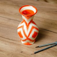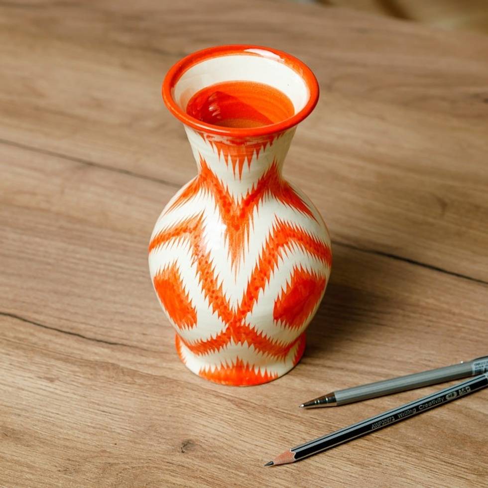 Orange and White Ikat-Patterned Glazed Ceramic Vase 'Ambitious Areas' Item ID: 2669935332