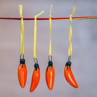 Orange Ceramic Serrano Pepper Ornaments Set of 4 'Serrano Peppers in Orange' Item ID: 2671808993