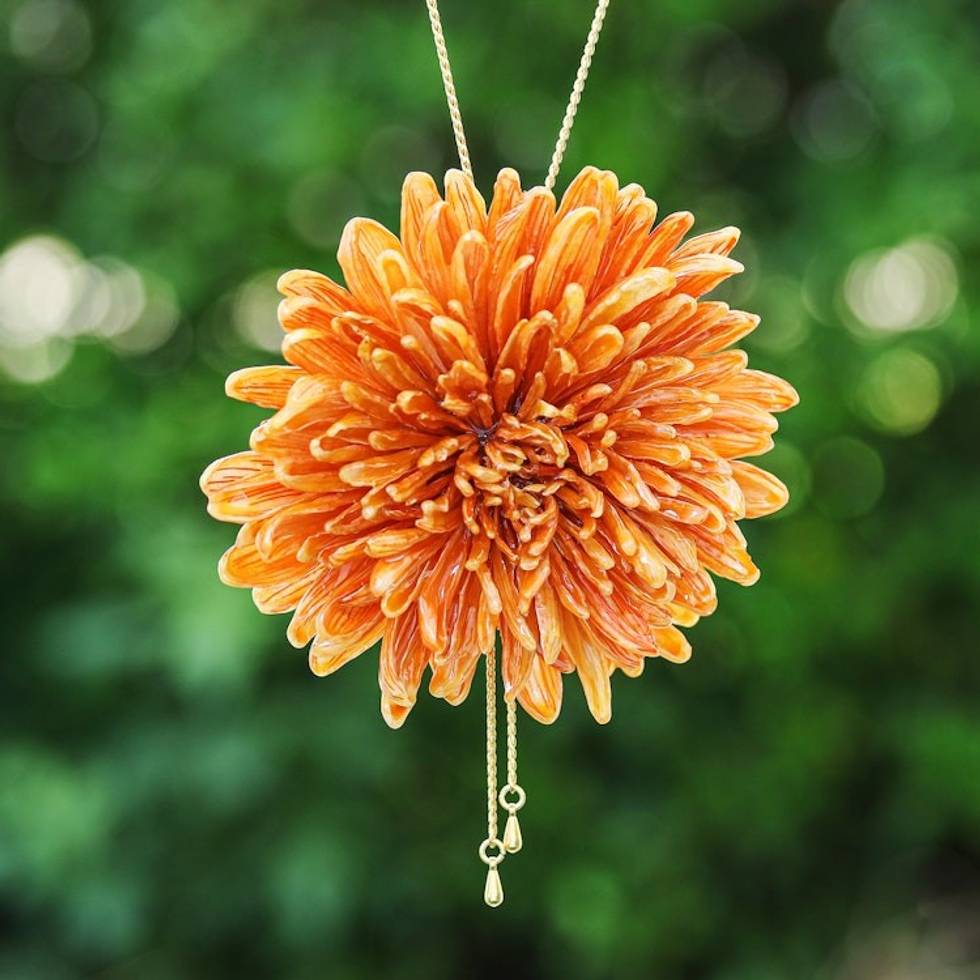 Orange Chrysanthemum Lariat Necklace with 22k Gold Plating 'Happy Orange' Item ID: 2671796668
