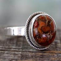 Orange Composite Turquoise Silver Ring from India 'Sunset Sky in Jaipur' Item ID: 2671793309