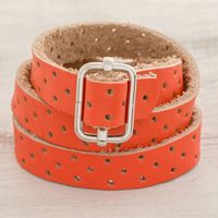 Orange Leather Wrap Bracelet from Costa Rica 'Bold Illusion in Flame' Item ID: 2671779939