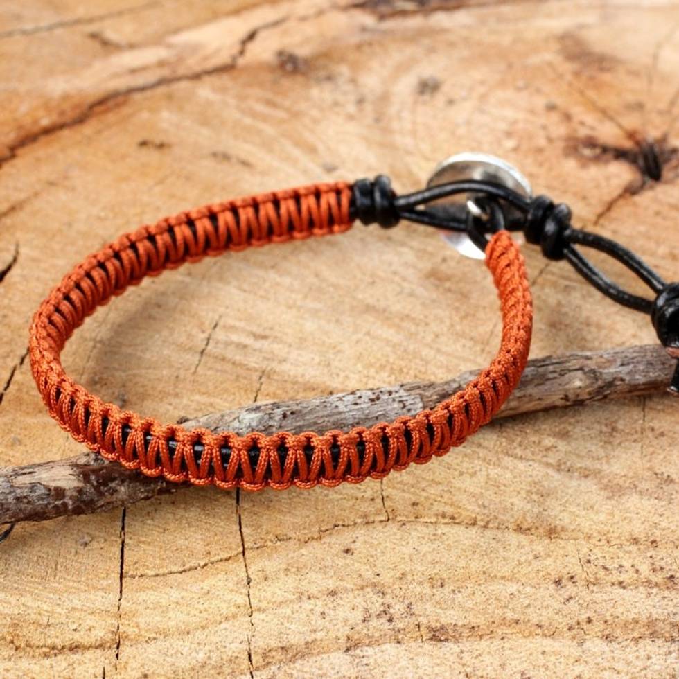 Orange Macrame on Leather Bracelet with Silver Button 'Orange Om' Item ID: 2671802763