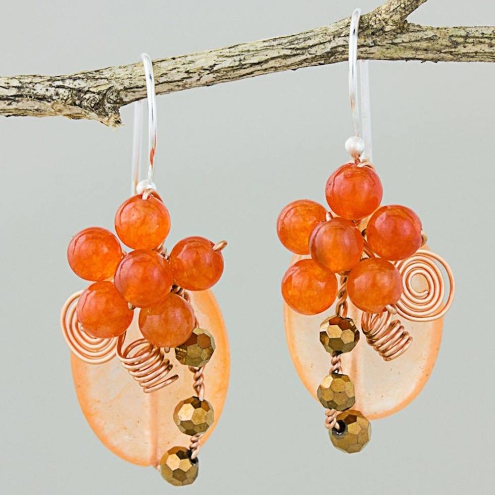 Orange Quartz and Glass Bead Dangle Earrings with Copper 'Garden Bliss in Orange' Item ID: 2669926119