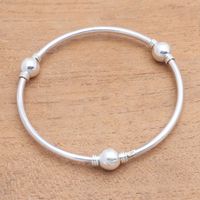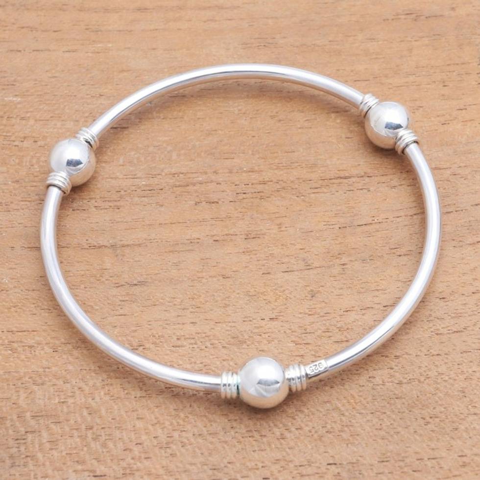 Orb Motif Sterling Silver Bangle Bracelet from Bali 'Round Trio' Item ID: 2671480102