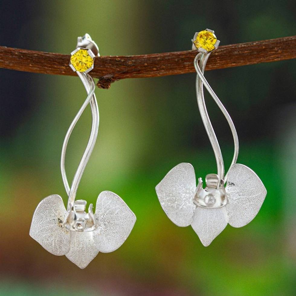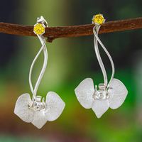 Orchid Sterling Silver Drop Earrings with Cubic Zirconia 'Sunshine Orchid' Item ID: 2671807306