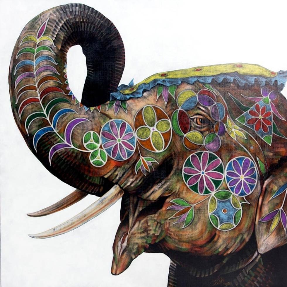 Original Acrylic Painting of Elephant with Pastel 'Happy Hours' Item ID: 2669889069