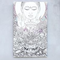Original Ink And Acrylic On Canvas Painting of Buddha 'Four Types of Lotus' Item ID: 2669889638