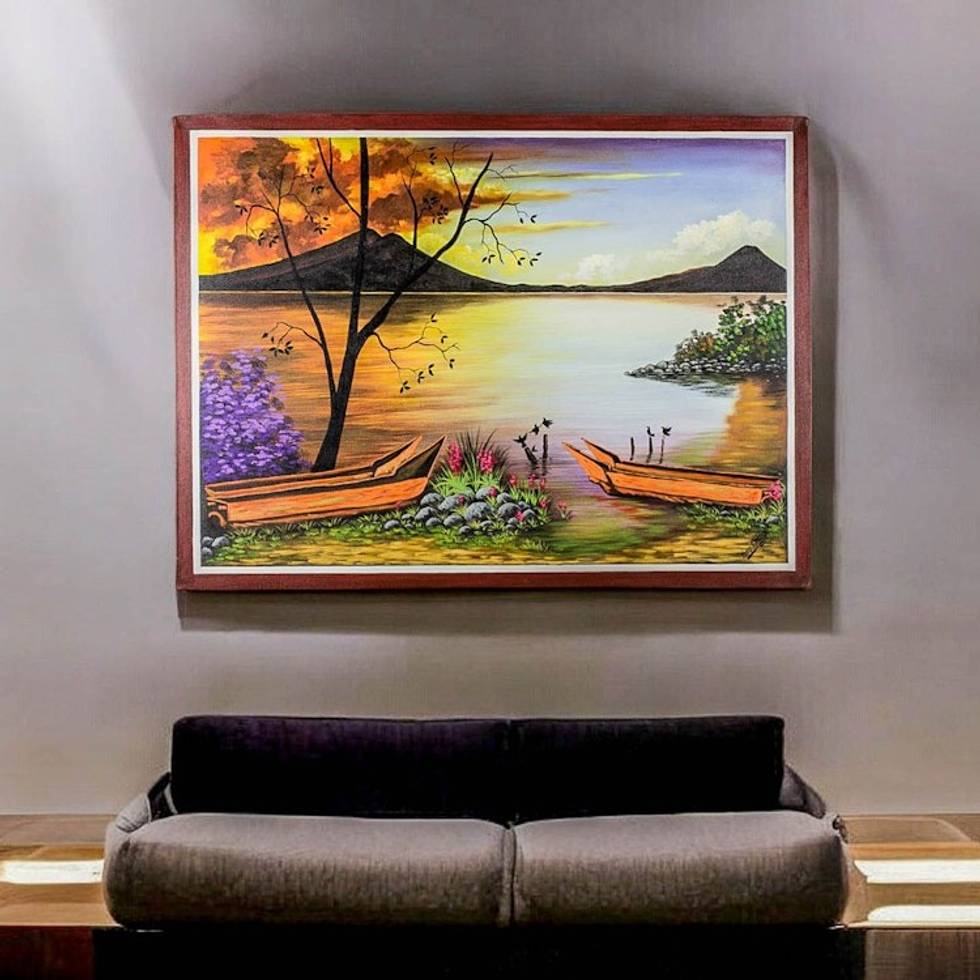 Original Painting of a Lake and Mountains from Guatemala 'Atitlan Landscape' Item ID: 2671779550