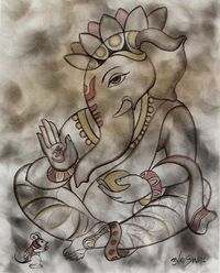 Original Portrait of Chintamani Ganesha in Neutral Colors 'Chintamani Ganesha' Item ID: 2669889301