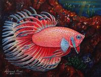 Original Signed Balinese Betta Fish Painting 'Rooster Betta' Item ID: 2669889335