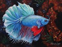Original Signed Balinese Blue Betta Fish Painting 'Blue Betta' Item ID: 2669889191