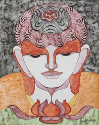 "Besides art, I was also very much interested in photography and took a six-month course in that field upon completion of my 12th standard. After that, I did a four-year diploma course in painting at the Bharatiya Vidya Bhavan Institute of Art and Culture. I was so fascinated by the beauty of art that I couldn't deny the fact that I was in love with it. As I learned every stroke, each line, I was more and more attracted to the world of art. In 1993, after my four-year painting course, I continued this journey and received a BA degree in fine arts. Here I came in contact with a variety of art media and enjoyed every bit of it. I don't want to be bound by any particular theme or style and have tried my hand at almost everything connected with art, like wood sculpting, clay molding, metal, fiberglass, wrought iron, ceramics, etc. I did quite a bit of work in wrought iron and metal sculpting and got a good response. I love working on Ganesha themes and have done quite a lot of pieces on this deity.