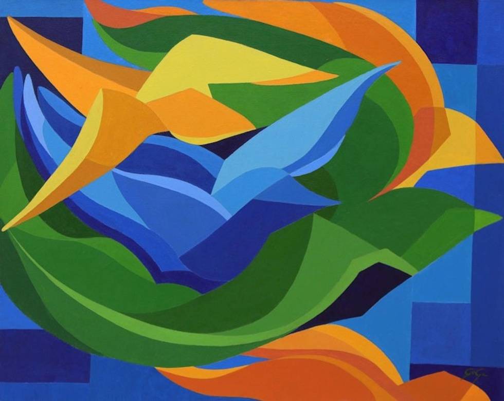 "I define my style as contemporary figurativism and I like to focus on themes related to ecology in a romantic sort of way. I'm not accustomed to sketching out my works before painting; I just create the forms with the brush as I go. The colors I use are also unique — many times I mix the blue and yellow to create my own green instead of using the green from the tube.