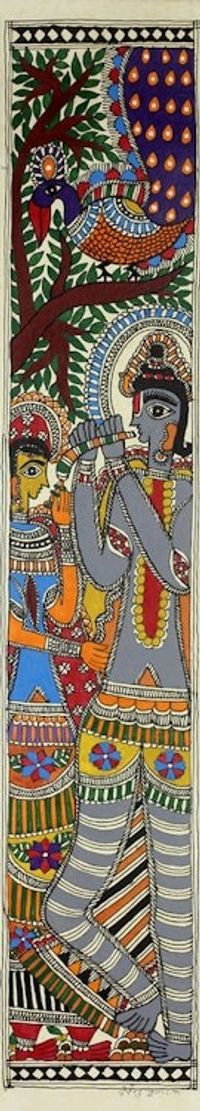 Original Signed Madhubani of Krishna and Radha 'Celestial Couple I' Item ID: 2671793447