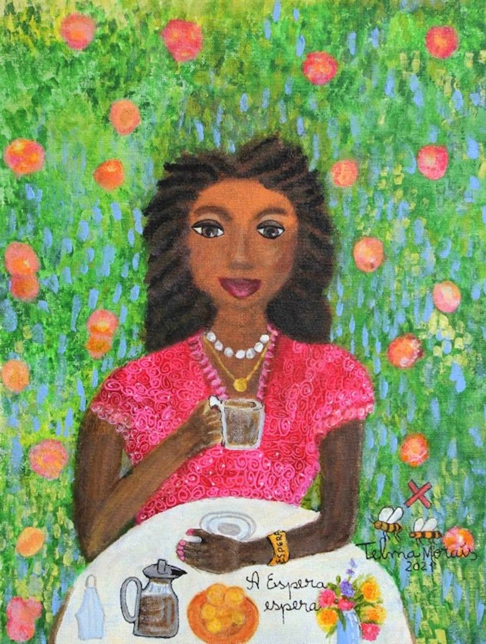 Original Signed Naif Painting of a Pretty Brazilian Woman 'The Wait, Waiting' Item ID: 2669889676
