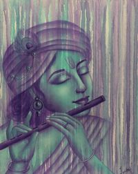 Original Signed Painting of Krishna 'Murlimanohar Krishna' Item ID: 2669889298