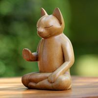Original Wood Sculpture from Indonesia 'Blessing Cat' Item ID: 2669891898