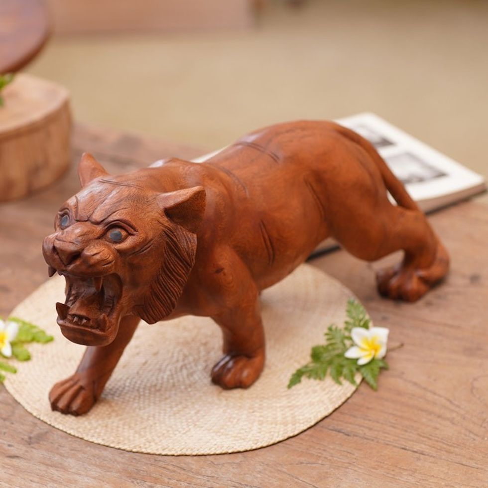 Original Wood Sculpture Hand Carved in Indonesia 'Mighty Tiger' Item ID: 2669891532