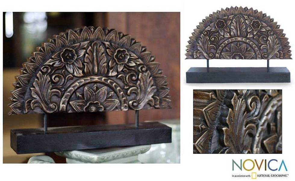 Original Wood Sculpture Hand Carved in Thailand 'Sunflower Fan' Item ID: 2671803071