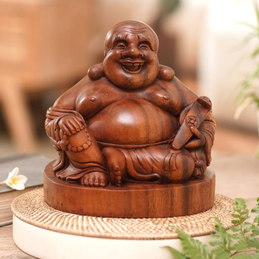 Original Wood Sculpture 'Jovial Buddha' Item ID: 2671700416