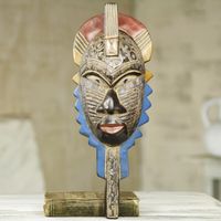 I was immediately attracted to the colors of this mask. They match my sofa and the painting hanging over it perfectly. And of course the expression of the mask is captivating. Sort of a sad face, but also a peaceful face. Love it!Superb crafting and imagination.Marsha