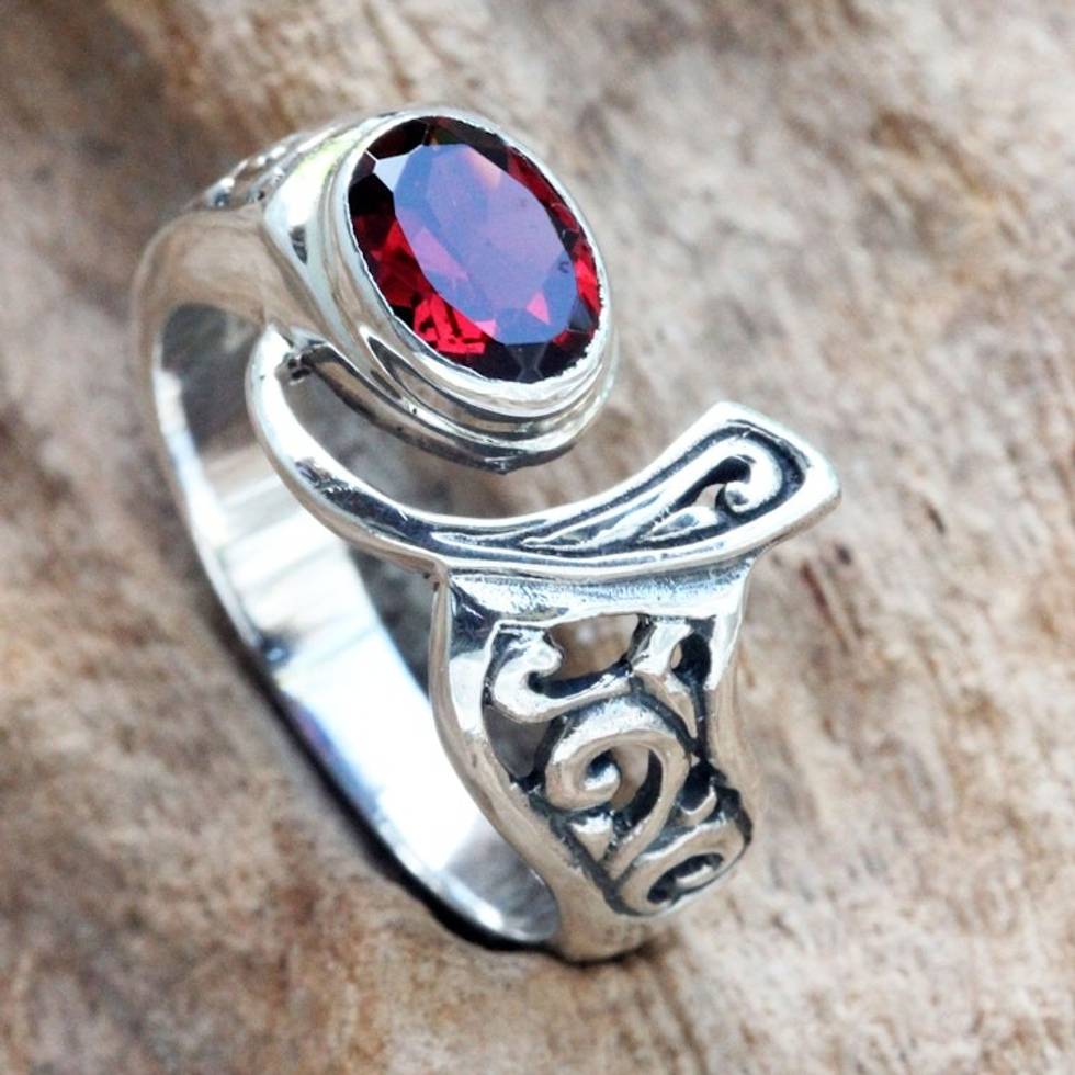 Ornate Asymmetrical Garnet and Sterling Silver Ring 'Jimbaran' Item ID: 2671702088