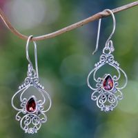 Ornate Garnet and Sterling Silver Dangle Earrings 'Crimson Arabesque' Item ID: 2669922310