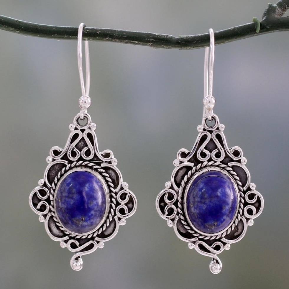 Ornate Sterling Silver and Lapis Lazuli Earrings 'Sky Symphony' Item ID: 2669925549