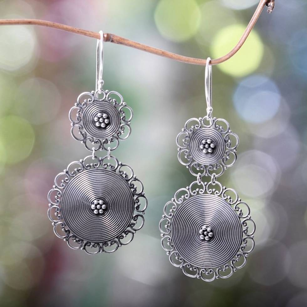 Ornate Sterling Silver Dangle Earrings Hand Made in Bali 'Florid Suns' Item ID: 2671702534