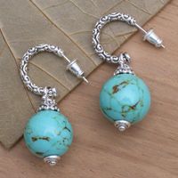 Ornate Sterling Silver Earrings with Reconstituted Turquoise 'Serene Planet' Item ID: 2669921263