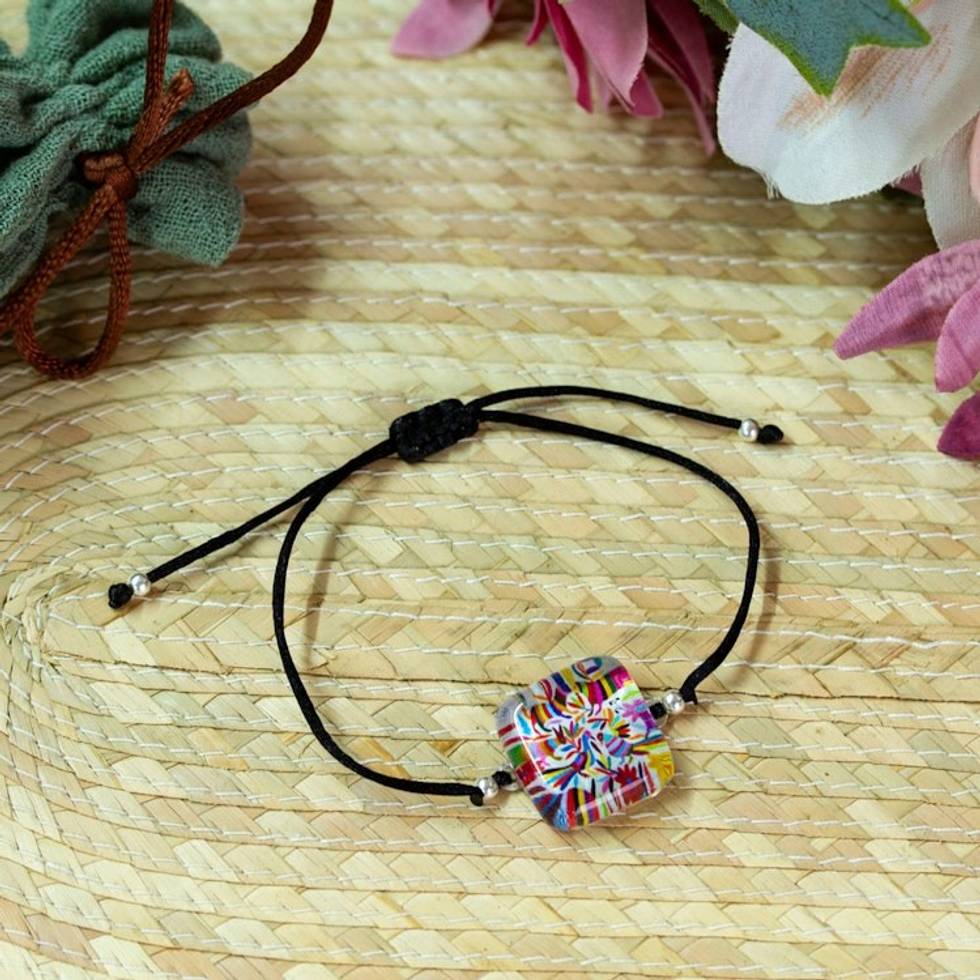Otomi Tenango Embroidery-Themed Decoupage on Glass Bracelet 'Otomi Embroidery' Item ID: 2671798482