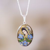 Our Lady of Guadalupe Pendant Necklace with Natural Flowers 'Guadalupe's Bouquet' Item ID: 2669931162